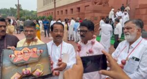 कांदा प्रश्नी महाविकास आघाडीच्या खासदारांचे संसद भवन परिसरात आंदोलन