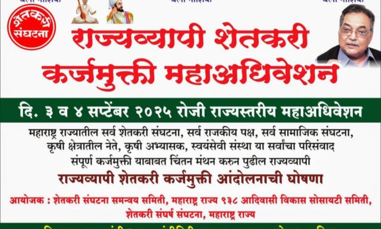 शेतकरी कर्जमुक्तीसाठी राज्यव्यापी आंदोलन ३ व ४ सप्टेंबर रोजी ओझर येथे महासभा