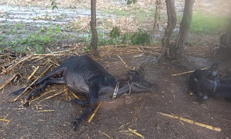 वीज कोसळून तीन जनावरांचा मृत्यू — शेतकऱ्यांनी घ्यावी खबरदारी