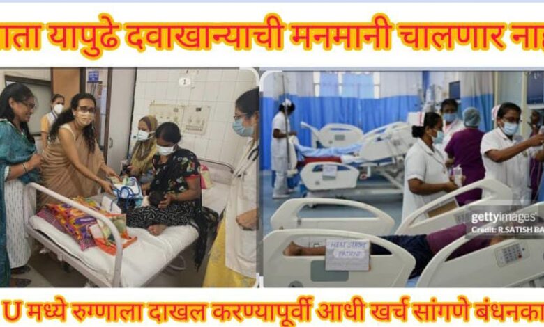 आता यापुढे रुग्णालयाचा मनमानी कारभार चालणार नाही… आय सी यु चा खर्च आधी सांगणे बंधनकारक … !