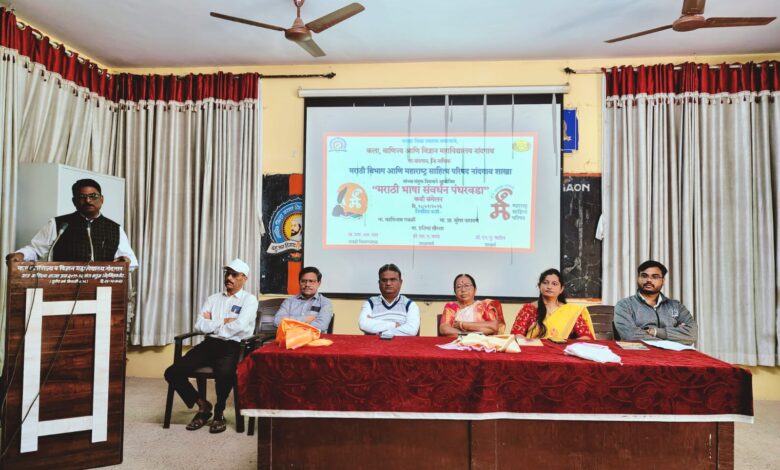 नांदगाव: येथील मराठा विद्या प्रसारक समाजाच्या कला, वाणिज्य व विज्ञान महाविद्यालयात मराठी विभागाच्या वतीने दि. १४ जानेवारी ते २८ जानेवारी या कालावधीत मराठी भाषा संवर्धन पंधरवडा साजरा करण्यात आला. पंधरवड्याच्या समारोप प्रसंगी कवी संमेलनाचे आयोजन करण्यात आले. तसेच पंधरवड्यात विविध कार्यक्रमांचे आयोजन करण्यात आले होते.