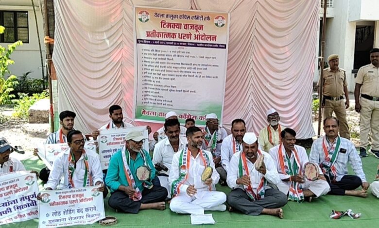 येवला दिनांक 5मार्च : कांद्याला योग्य हमीभाव मिळावा व शेतकऱ्यांच्या विविध प्रलंबित प्रश्नांकडे शासनाचे लक्ष वेधण्यासाठी येवला तालुका काँग्रेस कमिटीच्या वतीने तहसील कार्यालयासमोर टिमक्या वाजवत प्रतीकात्मक धरणे आंदोलन करण्यात आले.